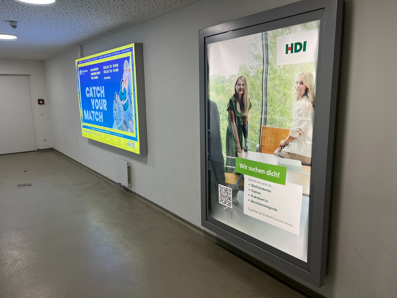 - Großflächige Platzierung klassischer und digitaler Werbemittel auf dem Campus